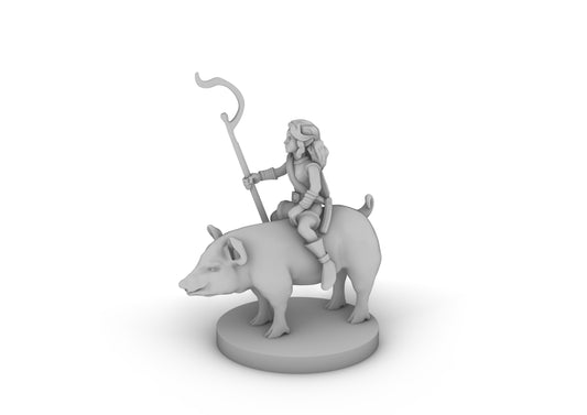 Halfling Female Druid Riding A Pig Tabletop DND Gaming Miniature